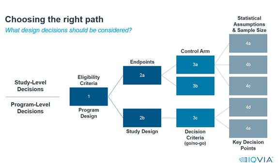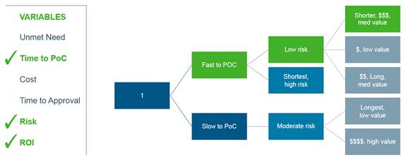 Drug development planning isn't a linear process, and the variables are almost always time, cost and risk driven. Different companies will have unique sets of priorities that will be used to balance these trade-offs in time, cost and risk in order to make decisions. For example, one drug development company may want the shortest route to market, so the development team may need to spend more in order to shrink timelines, or take on increased risk in the event that their Phase 2 program may be shorter and potentially less informative, with less risk mitigation prior to Phase 3. On the other hand, another company may be driven by shortest time to positive proof-of-concept, particularly if they have key business goals to achieve following a positive PoC. This may mean considering an interim analysis for PoC assessment, planning a study in the most responsive population (even if this may ultimately increase time to market), or with a costly endpoint assessment for robust data generation.