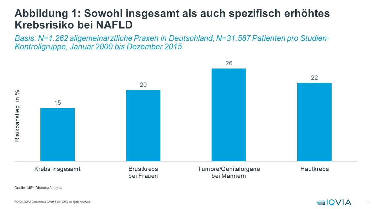 Frankfurt/Main – 05. November 2020 – Verschiedene internationale Studien weisen auf ein erhöhtes Krebsrisiko bei der nichtalkoholischen Fettlebererkrankung (NAFLD) hin. Diese stellt die häufigste chronische Lebererkrankung dar. Eine retrospektive Kohortenstudie über 10 Jahre zeigt auf Basis sog. Real World-Daten für Deutschland im Hinblick auf spezifische Tumorarten ebenfalls ein erhöhtes Risiko. Die NAFLD kann damit als ein Indikator für eine erhöhte Wahrscheinlichkeit, Krebs zu entwickeln, angesehen werden.