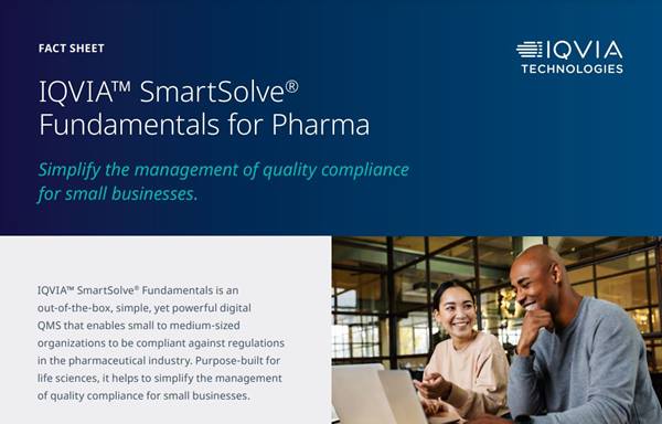 Simplify the management of quality compliance for your small pharma business with IQVIA SmartSolve® Fundamentals.