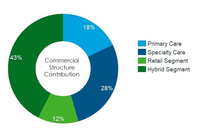 IQVIA received 23 completed surveys. This included information for 101 commercial teams within the pharmaceutical industry. On average, each organisation had four commercial teams in place with an average of nine FTEs per team. The contribution of the commercial structures analysed was leaning towards the Hybrid commercial model; this segment represents 43% of the teams analysed and demonstrates that companies have adapted to a more agile way of working.