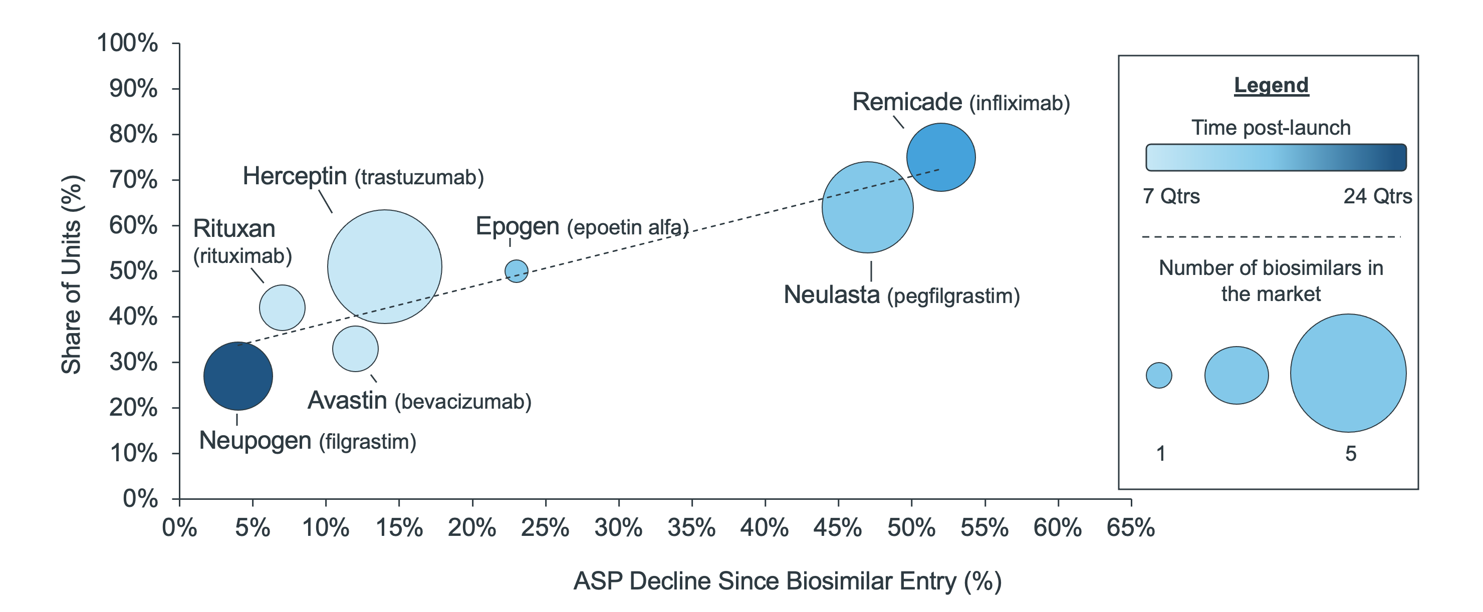Figure 1: Innovator share of units and ASP decline since biosimilar launch (Q2-2021)