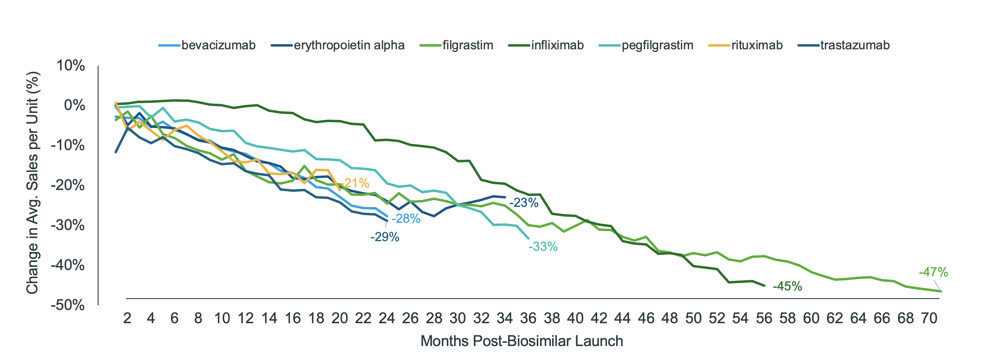 Figure 2: % Change in average molecule sales per unit since biosimilar launch