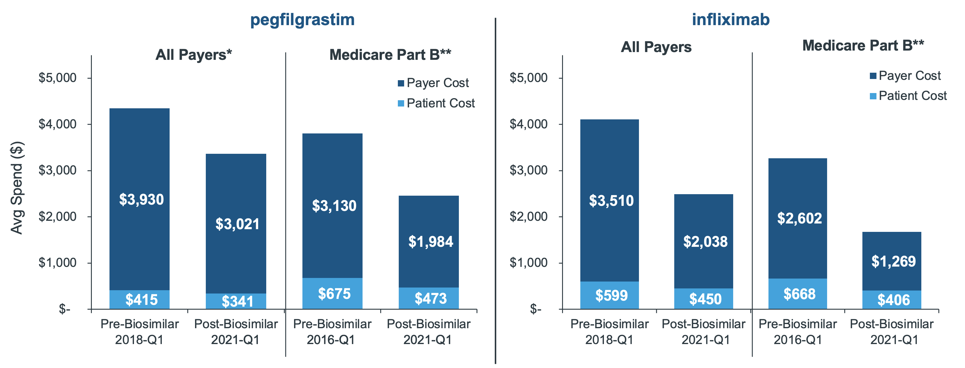 With market share as the sole measure, biosimilars do not appear to be succeeding in the U.S. However, if you broaden the perspective to include total healthcare savings as a consideration, biosimilars have had a clear impact as they drive down reference costs in addition to posing lower prices in their own right. This is clearly demonstrated across multiple biosimilars and is even more pronounced with more recent launches.