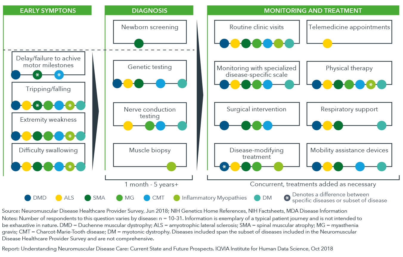 The health journey of a neuromuscular disease patient varies by disease and by individual with many different strategies for diagnosis, care management and treatment